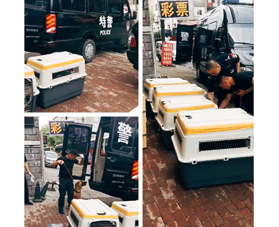 英國(guó)斗牛犬(美國(guó)——中國(guó))因?yàn)槌赡暧⑴O奶?**怕中暑,專業(yè)的寵物保姆給寶寶航空箱放了冷凍礦泉水瓶來(lái)給它降溫。即使長(zhǎng)途運(yùn)輸,寶寶狀態(tài)非常好,在辦公室等待主人接他回家,主人非常滿意,感恩